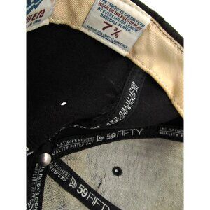 Classic vintage New Era 59FIFTY fitted cap for the Pittsburgh Pirates, size 7 3/8. Made in the USA from 100% wool. Features iconic gold “P” logo, MLB batterman back hit, and black undervisor. True 90s collectible — a must-have for vintage MLB fans or retro streetwear collectors.