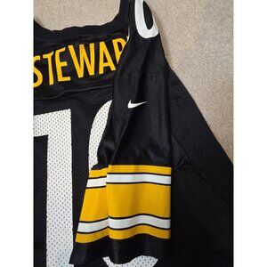 This Vintage 90s Pittsburgh Steelers Kordell Stewart #10 Nike Team Jersey Size XXL is a nostalgic piece of fan apparel from the NFL era. Made by Nike, this jersey features the iconic Pittsburgh Steelers logo and player Kordell Stewart's number 10. Perfect for male fans of football and the Steelers team, this jersey is a great addition to any sports memorabilia collection. With its vibrant colors and classic design, this jersey is a must-have for any Steelers fan looking to show their team pride in style.