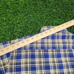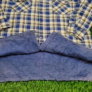 Stay stylish with this vintage 90s plaid shacket jacket in blue. A perfect layering piece for retro lovers! Large size.