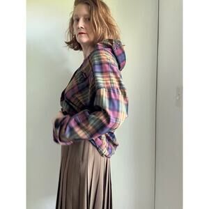 Vintage 90s Plaid Womens Button Down Shirt Size M Cotton Preppy Twee Academia