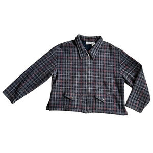 Vintage 90s Plaid Wool Blend Jacket Burgundy Gray Zip Up Size XL Boxy