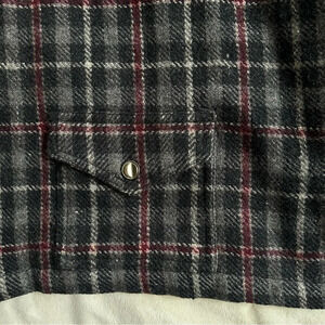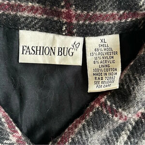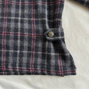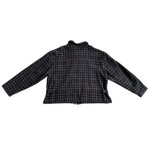 Vintage 90s Plaid Wool Blend Jacket Burgundy Gray Zip Up Size XL Boxy