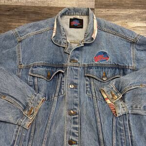 Vintage 90s Planet Hollywood Orlando Blue Mens XL Denim Jean Trucker Jacket