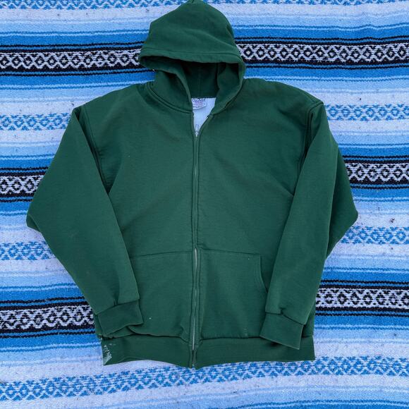 Vintage 90's Pluma Blank Green Thermal Lined Zip Up Hoodie Sweatshirt Sz 2XL XXL