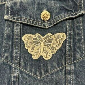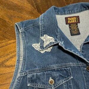 Vintage 90s Plus Size 24W Faded Glory Denim Vest Sleeveless Jean Jacket Biker Lace Butterfly