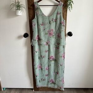 Vintage 90s Plus Women’s Floral Print Sleeveless Dress Size 14W Made in USA
