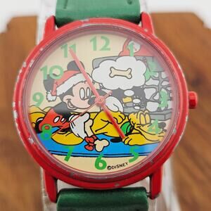 Vintage 90s Pluto Mickey Dreaming Womens Watch Red Green Christmas Santa Holiday