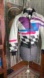 90s colorful white, pink and blue with racing checkered flags, winter puffy quilted lining, leather, zip up jacket. Unique fun snowmobiling Polaris embroidered winter leather jacket. Tagged as a size small vintage item in vintage condition no major flaws. Please see the pictures of the item above for condition and size.