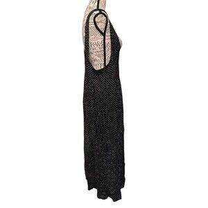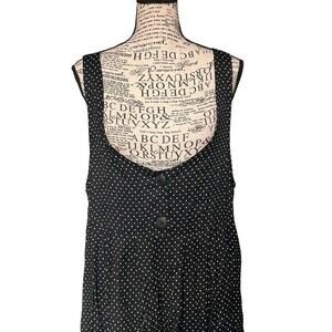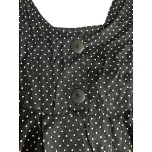This vintage 90s polka dot dress overalls is a stylish piece perfect for women who love a retro and quirky look. Made in the USA, this dress features a sleeveless design with a square neckline and wide sleeves, giving it a unique and feminine touch. The black and white polka dot pattern and button accents add a playful element, while the zip closure and machine washable material make it convenient for everyday wear. Ideal for various occasions such as parties, casual outings, or even traveling, this dress exudes a quirky charm that is sure to turn heads.