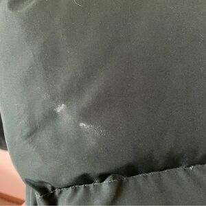 Has some minor marks on upper back & back of sleeve. Sweater material along neckline is stretched out & looser fitting.