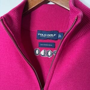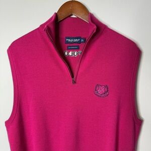 Vintage 90s Polo Ralph Lauren Golf Merino Wool Pink Quarter Zip Sweater Vest
