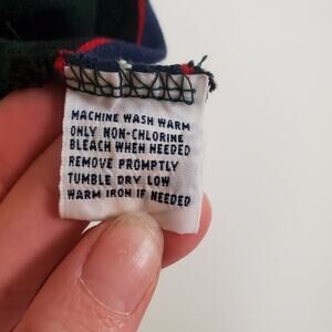 Vintage 1990s short sleeved collared polo style shirt from Polo by Ralph Lauren. Pine green base with navy blue, black, red, and white stripes. Red embroidered logo at the chest. Cropped boxy fit with a raw-cut rolled hem. 100% cotton. Fits true to tag size women's XL. Black Vans pictured are also for sale - see separate listing.