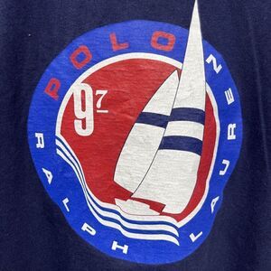 Vintage 90s Polo Ralph Lauren T-Shirt Sailing Boat Pocket Tee Single Stitch XL. Size tag has been cut out, listing as XL based on measurements see below for best fit