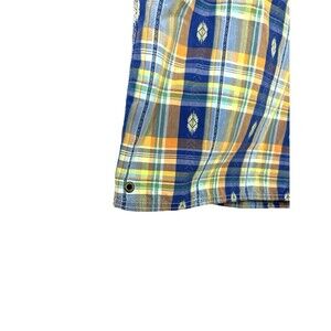Details: Vintage, Plaid, 2 slash pockets, one back pocket with button closure, inside secret pocket, lined, Zipper with rope closure, Aztec print