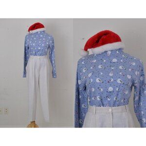 Vintage Christmas mock neck long-sleeved shirt. In good condition.