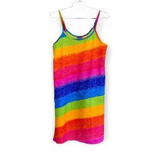 Vintage 90s Popular Sports Rainbow Slip Mini Dress Size XL