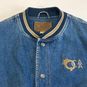 Vintage 90s Port Authority Denim Canvas Bomber Varsity Jacket Men's XL
