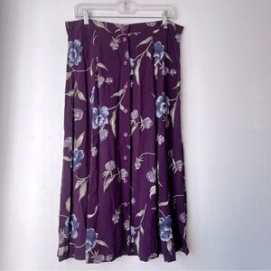 Vintage 90s Prophecy by Sag Habor Purple Floral Button Front Midi Skirt L. Purple a line midi skirt with blue and green floral pattern. 100% rayon. waist is 17" across, length 33".