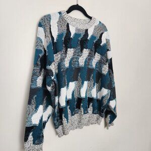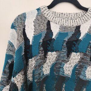 Vintage 90s Protege Collection Mens XL 3D Knit Coogi Style Pullover Sweater Teal
