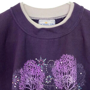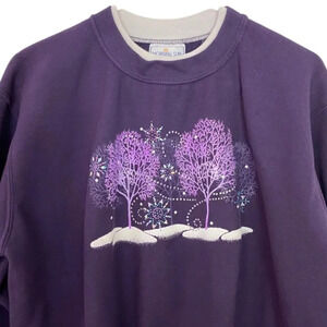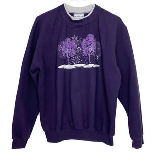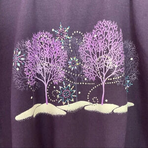 Vintage 90s Pullover Sweatshirt Womens Medium Large Tree Purple Nerdy Granny