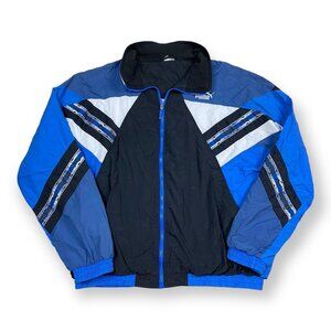 Vintage 90s Puma Sports Nylon Tracksuit Top Jacket Athletic Stripes Colorblock.