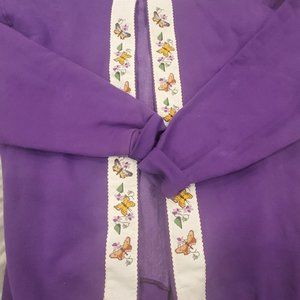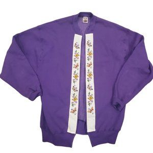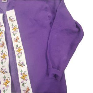 Vintage 90s Purple Granny Core Open Cardigan Sweatshirt Purple Butterflies XL.