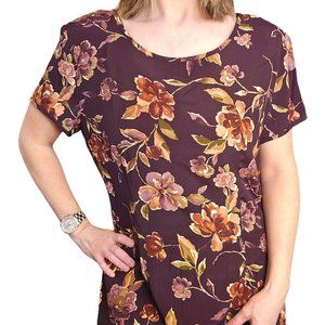 Vintage 90s Purple Sz 12 Dark Floral Long Maxi Dress Shortsleeve Romantic