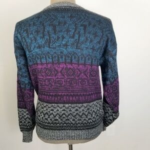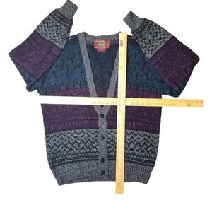 Vintage 90s Purple and Teal Printed Cozy Cardigan Grandpa Sweater Size Large