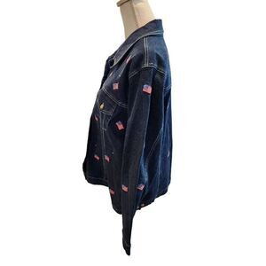 Vintage 90s Quacker Factory Womens Navy Blue Demin Jacket USA Flags Size Large