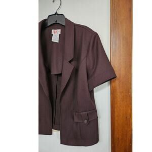 Vintage 90s R & K Originals Blazer Womens Brown Open Front Short Sleeve Size 16