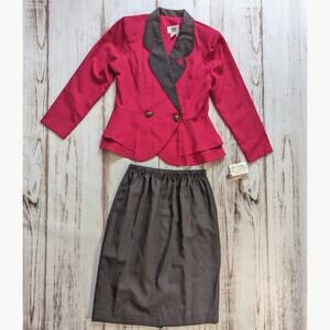 Vintage 90's R&A Collections Magenta and Black 2 piece Suit SKirt 12 Petite New