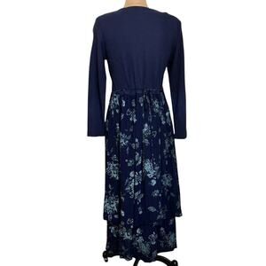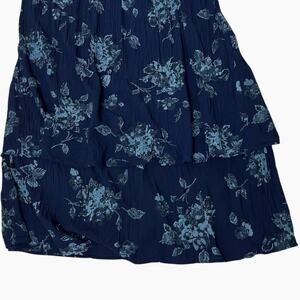 Vintage 90s Rabbit Designs Maxi Dress Size 14 Blue Floral Layered Crinkle Skirt