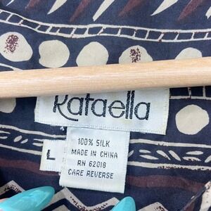 Vintage 90s Rafaella Silk Blouse Sz L Tribal Print Minimalist Boho Artsy Top