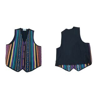 Vintage 90s Rainbow Southwestern Striped Vest Festival Waistcoat / Medium -