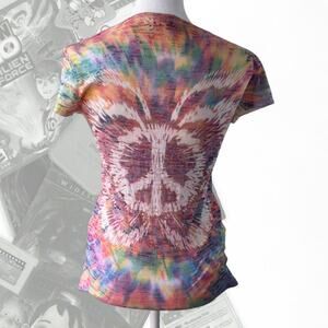 Vintage 90’s Rainbow Tie-Dye Short Sleeve Butterfly Peace Sign Graphic Tee / Top