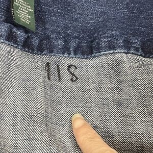 Good vintage condition! A couple of interior only writing spots where you can see a marker. One missing button near one of the pockets (pictured).
