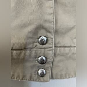 In great used condition. Please note minor flaw on the right cuff as seen in picture #7. Please review all photos for the overall condition of this jacket.