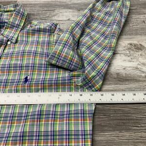 Vintage 90s Ralph Lauren Madras Green Orange Men M Custom Fit Preppy Button Up Shirt