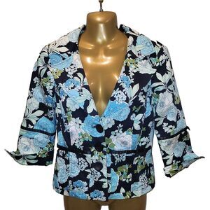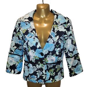 Vintage 90s Rampage Medium Blue Floral Blazer Fitted Cropped 3 Button Jacket