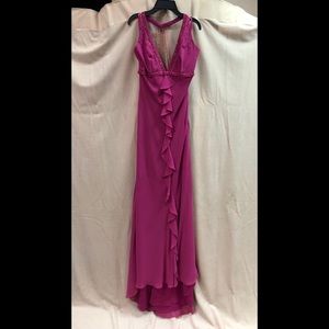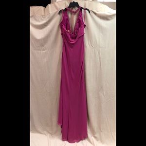 Vintage 90's Raspberry Pink Ruffle Halter Gown