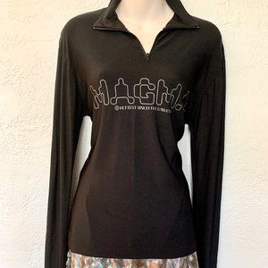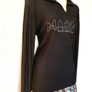1990's Raver Polyester Long Sleeve Raver shirt with Zipper neck.