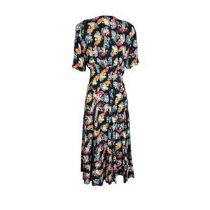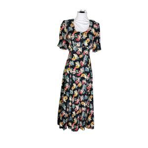 Vintage 90s Rayon Floral Button Front midid ankle Dress XS