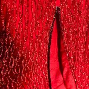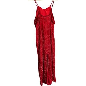 Vintage 90's Red Beaded Silk Full Length Evening Dress - XL