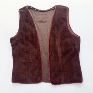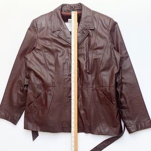 Vintage 90s Red Brown Leather Button Jacket Blazer Tie Waist Removable Lining L