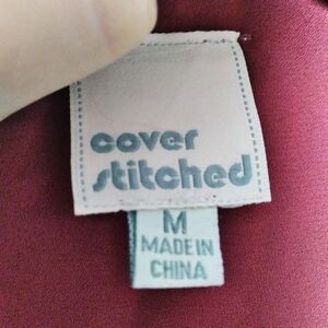 Red button down blouse with gold buttons and gold zipper details on the two breast pockets. Excellent pre-owned condition: no holes, rips, tears or stains.