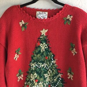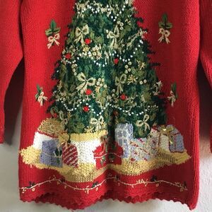 Vintage 90s Red Novelty Christmas Tree Festive Holiday Ugly Christmas Sweater M