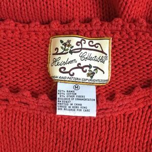 Heirloom Collectibles VTG 1990s Art to Wear Retro Aesthetic Red Ramie Cotton Other Fibers Blend Knitted Bead Embellished Oversized Sweater
