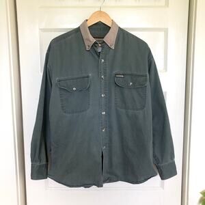 Vintage 90s Remington Outdoor TwoTone Shooting Shirt M Olive Twill Elbow Patches