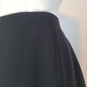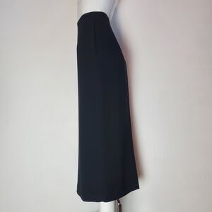 Vintage 90s Rena Rowan Essentials slinky black maxi skirt. High-waisted with back zipper closure, back slit, and inner lining. No pockets.