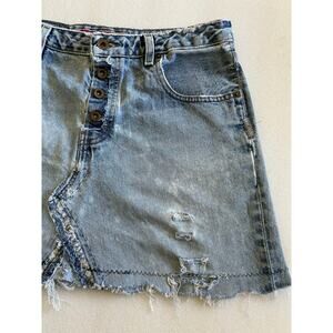 Vintage 90s Reworked Silver Jeans Button Fly Medium Wash Distressed Denim Skirt Size 31 Grunge